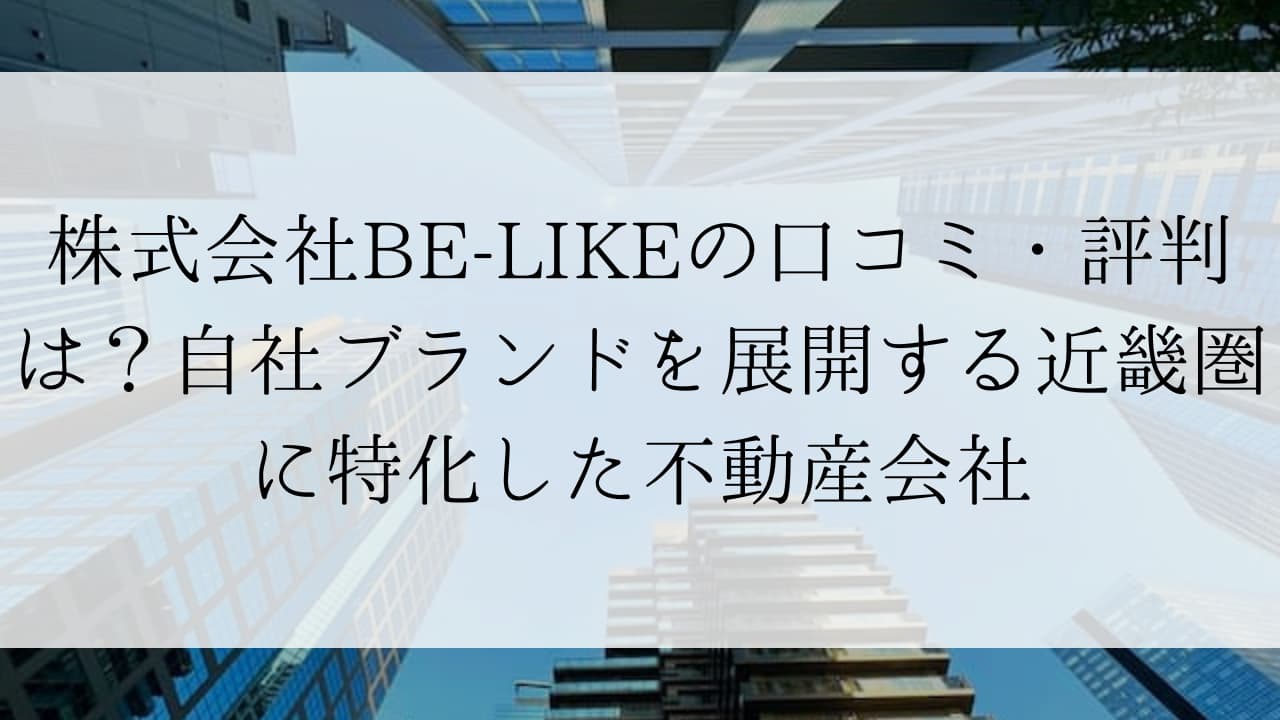 株式会社BE-LIKE(ビーライク)は、大阪府大阪市に本社を構え、近畿エリアを中心とした投資用不動産を取り扱う不動産会社です。収益ビルやマンション、収益用地など幅広い物件を扱っており、特に自社ブランドの収益マンションやオフィスビル、テナントビルなどを多く手がけている点が特徴です。