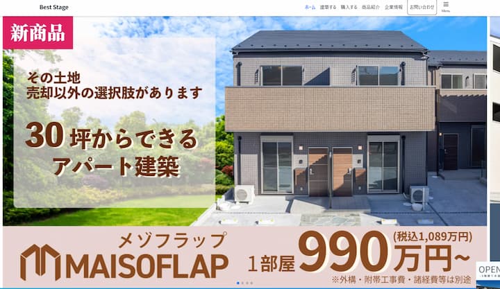 株式会社Best Stageは、自社で開発・設計・施工した木造3階建てアパートシリーズを展開している不動産会社です。複数のシリーズからニーズに合ったアパートを選べるほか、自社企画によりコストを抑えた建築が可能としています。