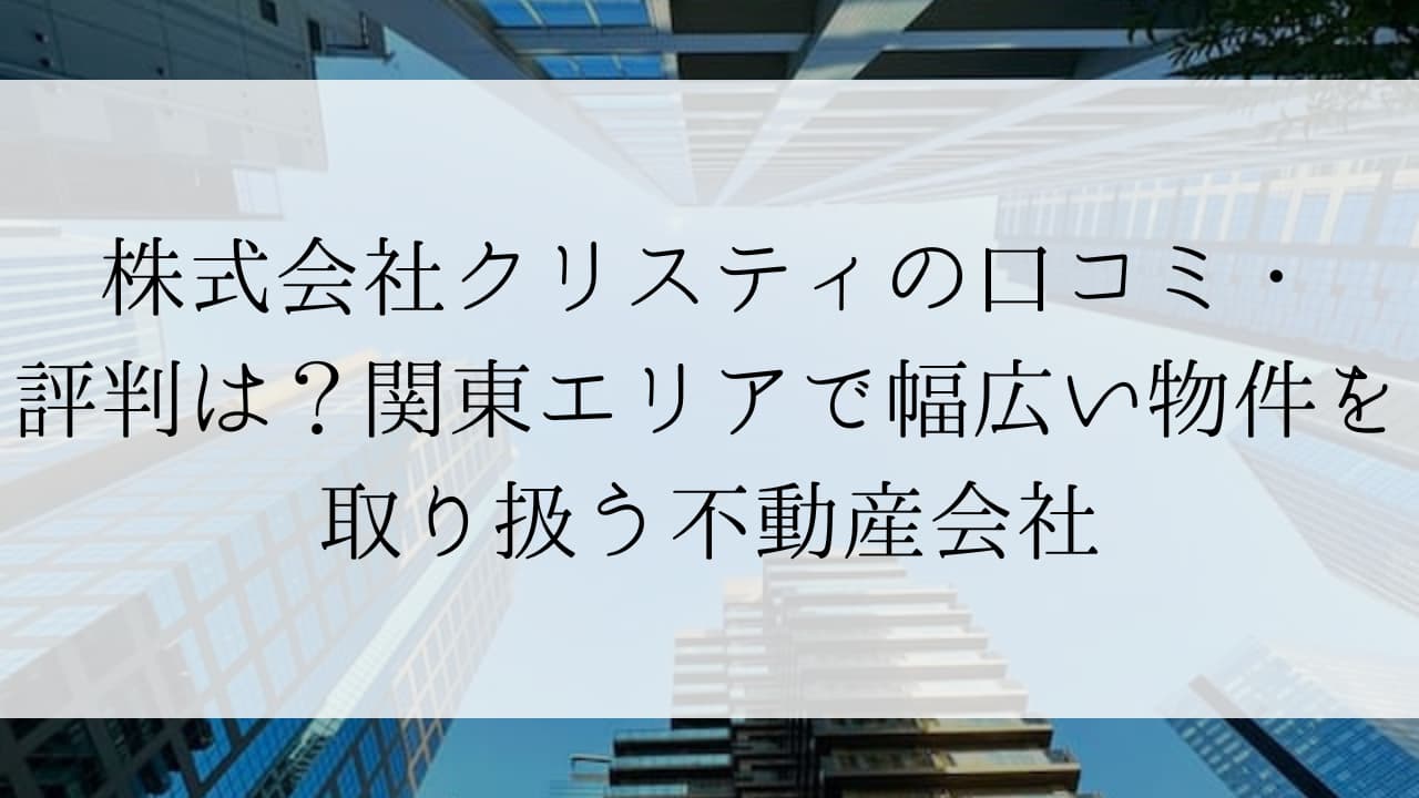 株式会社クリスティは、関東エリア(一都六県)を中心に、不動産投資物件の仲介から賃貸管理、売却までをワンストップで手がける不動産会社です。