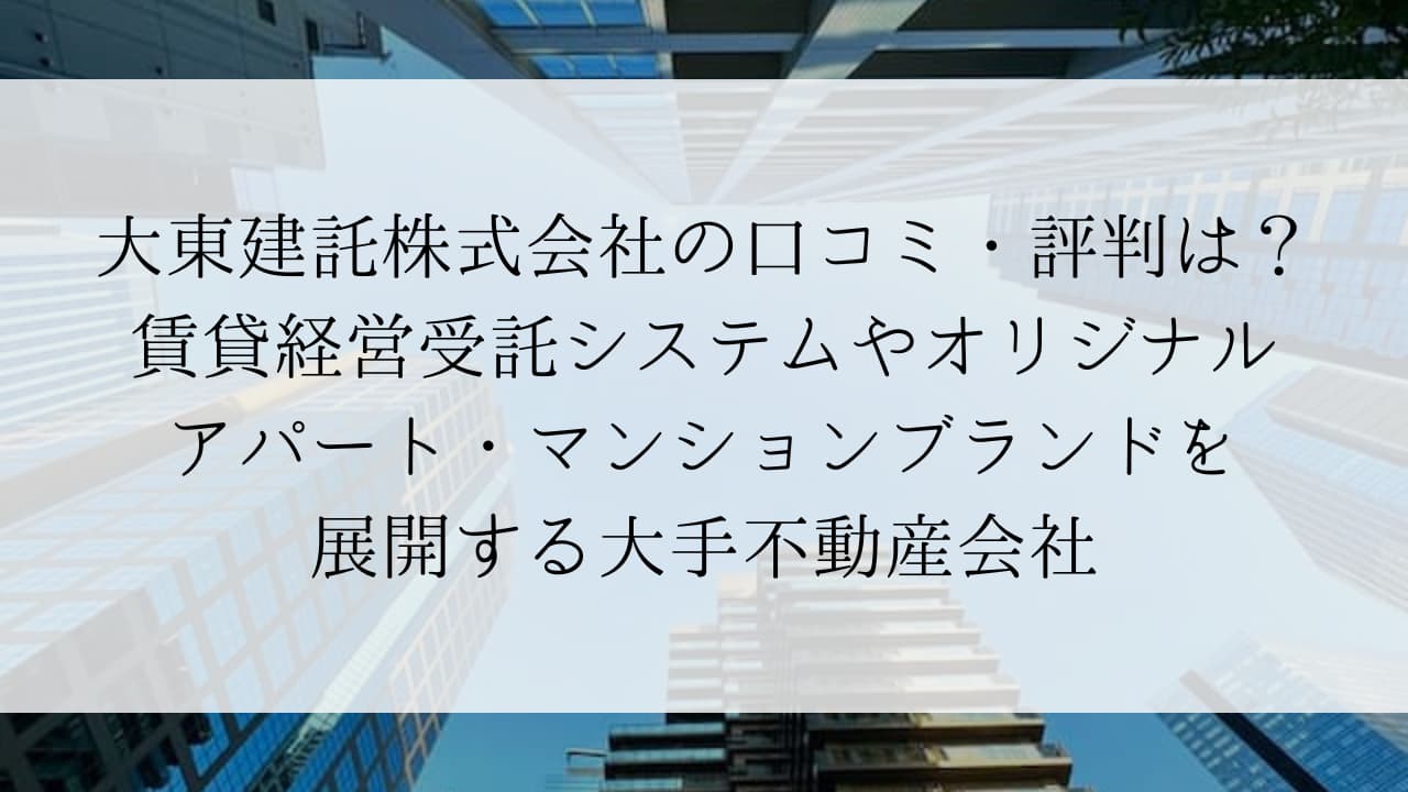 大東建託株式会社はテレビCMでも広く知られている大手企業です。知名度と実績の豊富さから、安心感が高いと評価する口コミが見られました。大手企業だけあり、取り扱う物件の質や入居率の高さについても一定の評価が寄せられています。