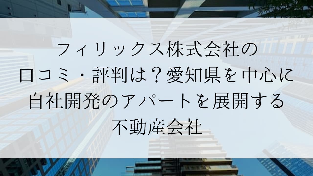 愛知県に本社を置くフィリックス株式会社は、愛知県や長野県を中心に、投資用アパートの企画・開発・販売を行う不動産会社です。ガレージ付きアパートのフランチャイズ事業も展開しており、独自性のある投資物件を提供しています。