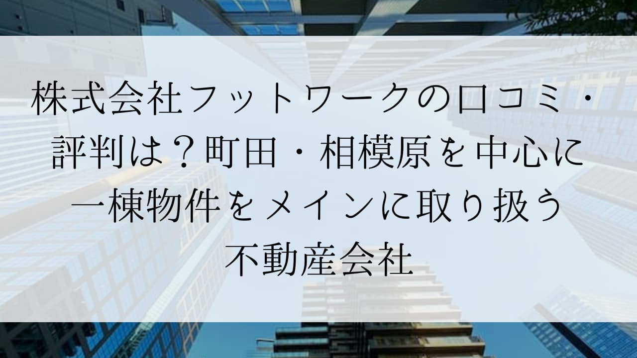 株式会社フットワークは、東京都町田市に本社を置き、隣接する相模原市を含む一都三県を中心に不動産投資物件を扱う会社です。アパートやマンション、ビルなどの売買仲介に加え、賃貸仲介や賃貸管理も展開しています。
