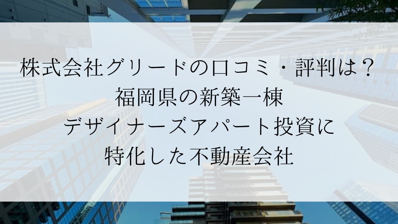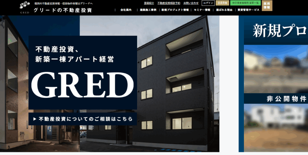 株式会社グリードは、福岡県内で新築一棟デザイナーズアパート投資をはじめとした不動産事業を手掛ける会社です。