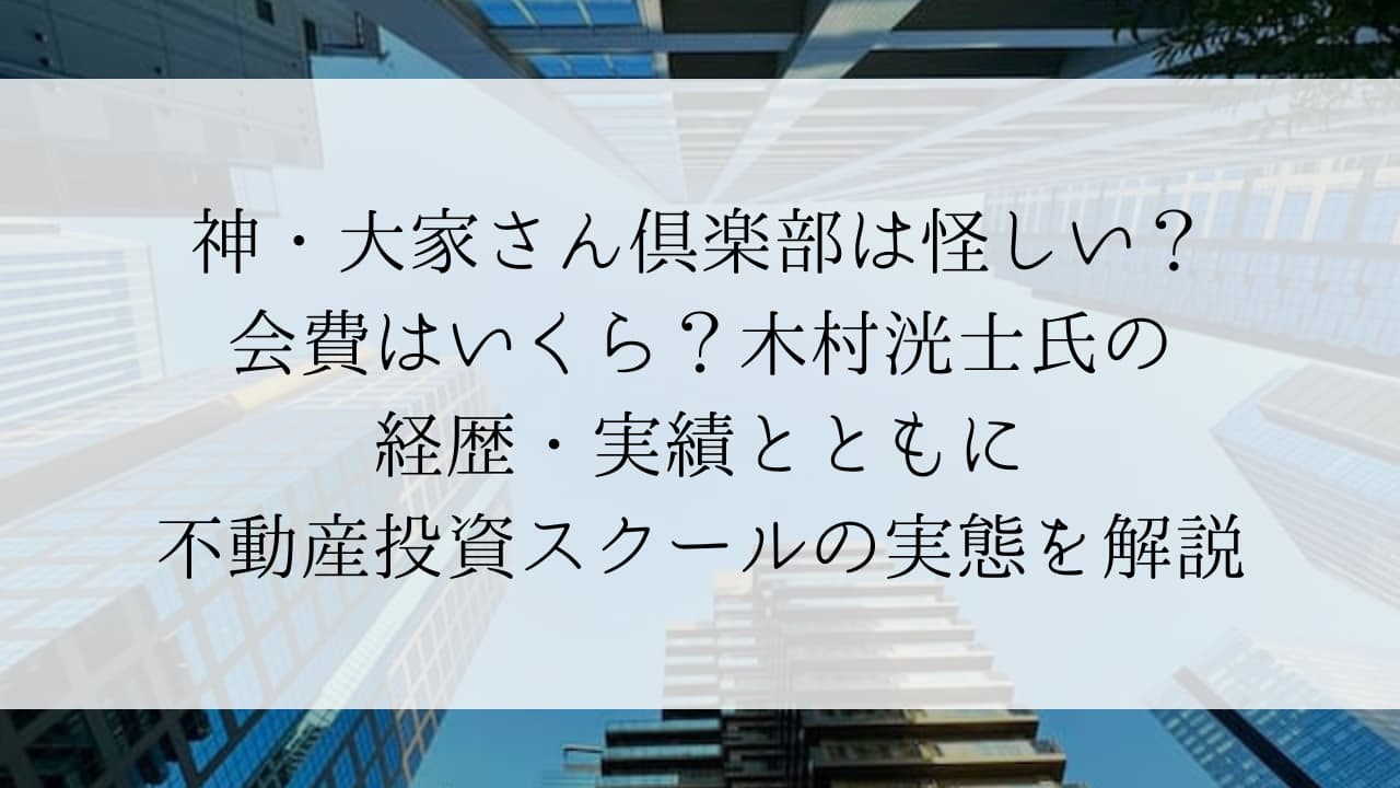 そこで本記事では、神・大家さん倶楽部の概要に加え、代表である木村洸士氏の経歴や実績、受講メリット、そして「怪しい」と言われる理由を中立的な立場から整理します。不動産投資スクールとして検討する際に、何を確認すべきかという視点で解説していきます。