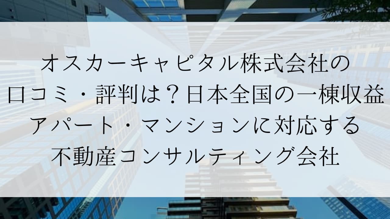 本記事では、オスカーキャピタル株式会社の基本情報や特徴・メリットを整理し、インターネット上に公開されている口コミの評判もあわせてご紹介します。