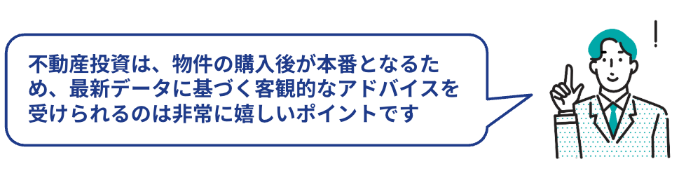 最新の不動産情報を継続的に提供してもらうことで、家賃相場や入居者ニーズの変化を的確に把握できれば、より合理的な判断をもとに投資を続けられます。