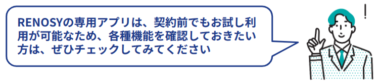 ただし、RENOSYで扱っている物件の一部は、アプリ非対応となるため注意が必要です。