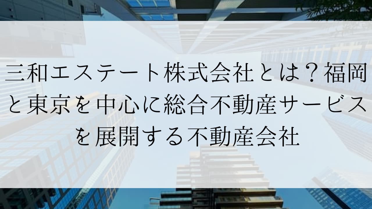 三和エステート株式会社は、収益物件の販売や賃貸管理、賃貸仲介などを手がける総合不動産会社です。1993年に福岡県で創業し、現在は東京都港区にも東京オフィスを構えており、福岡県および東京都内を中心に事業を展開しています。