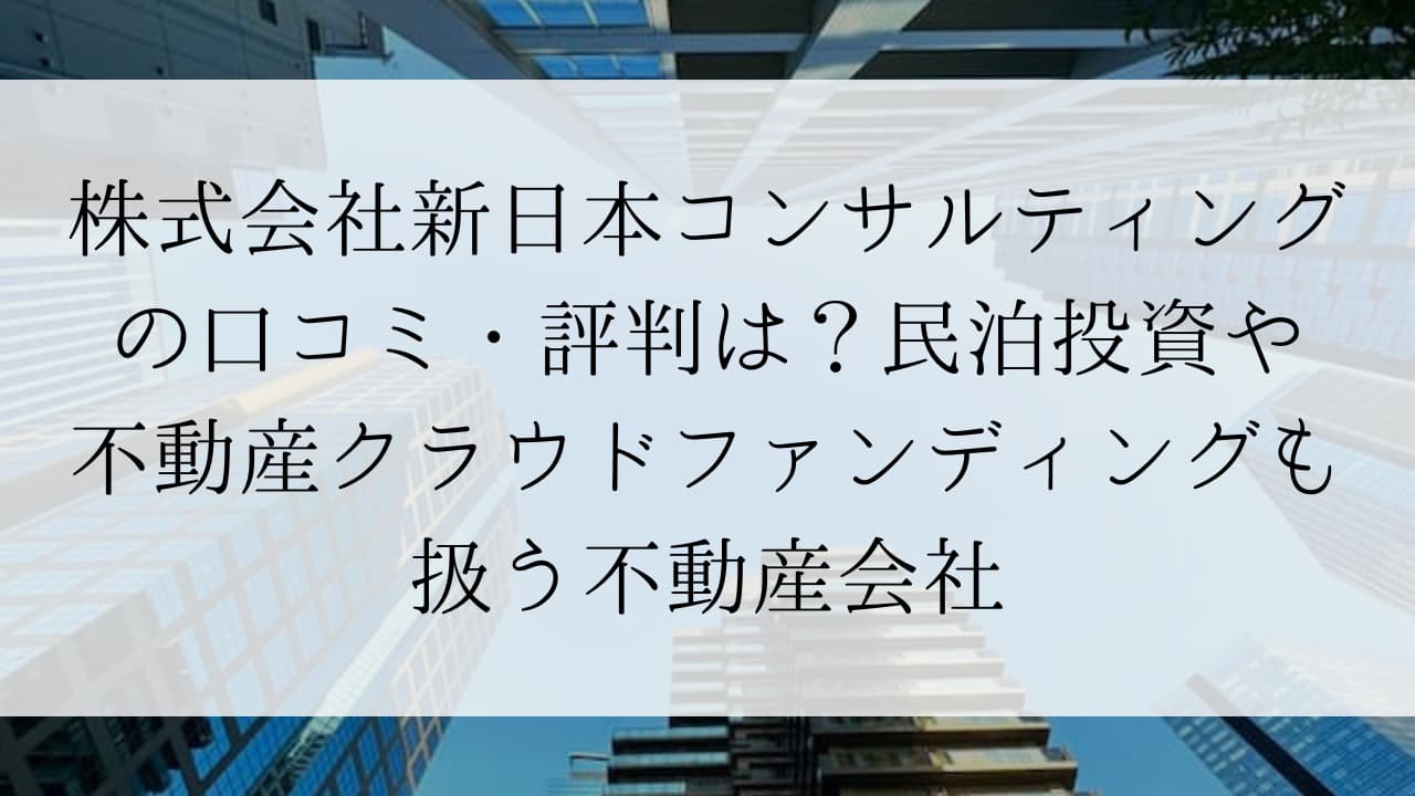 株式会社新日本コンサルティングは、関東エリアを中心として一般的なアパートやマンションでの不動産投資に加えて、民泊や宿泊施設、マンスリーマンションへの投資や不動産クラウドファウンディングを利用した不動産小口化商品も利用可能な会社です。