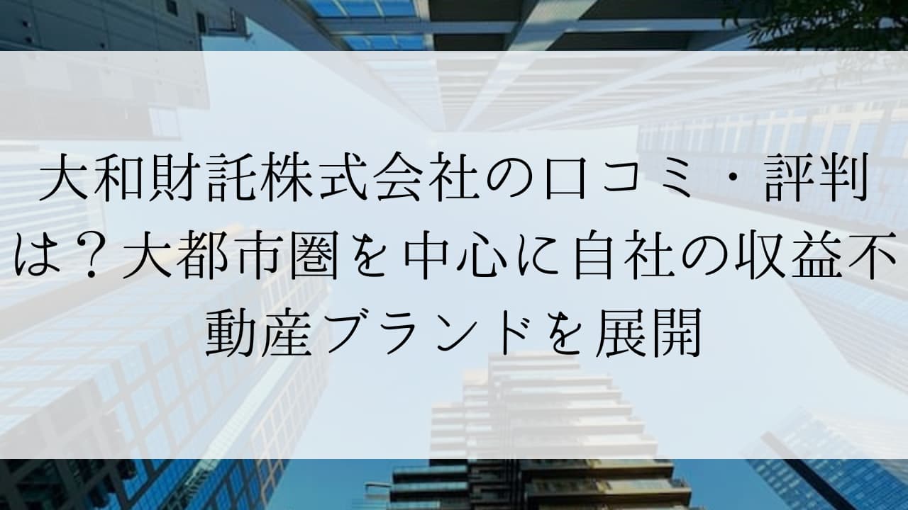 大和財託株式会社は、自社設計・施工による一棟物件ブランドを複数展開し、大都市圏を中心に不動産投資のサポートを行っている不動産会社です。物件の販売だけでなく、賃貸管理や土地活用、法人設立支援なども手がけており、幅広いサービスをワンストップで受けられる体制を強みとしています。