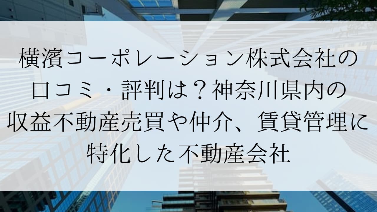 横濱コーポレーション株式会社は、神奈川県内の収益不動産売買や仲介、賃貸管理に特化した不動産会社です。神奈川県内での地域密着型不動産投資を一貫サポートしており、顧客一人ひとりに最適で利益を最大化できる物件の紹介や提案を行っています。